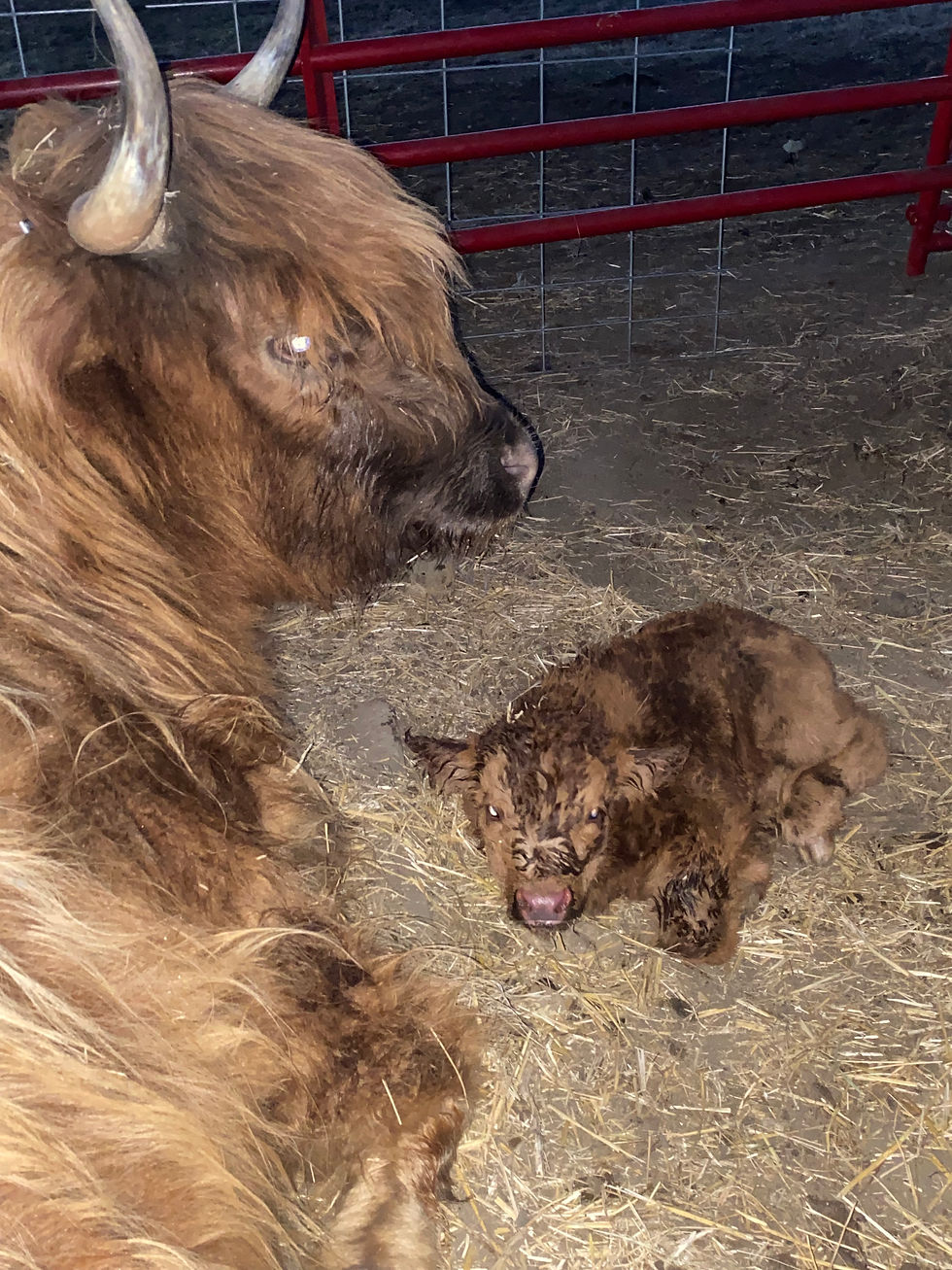 Clara was first, her baby arrived sooner than expected and with a bit of a scare for all of us. She was afraid of it and luckily we had a couple seasoned farmers helping us get them in the barn and shortly after that Clara cleaned the little guy up and allowed his to nurse shortly after.